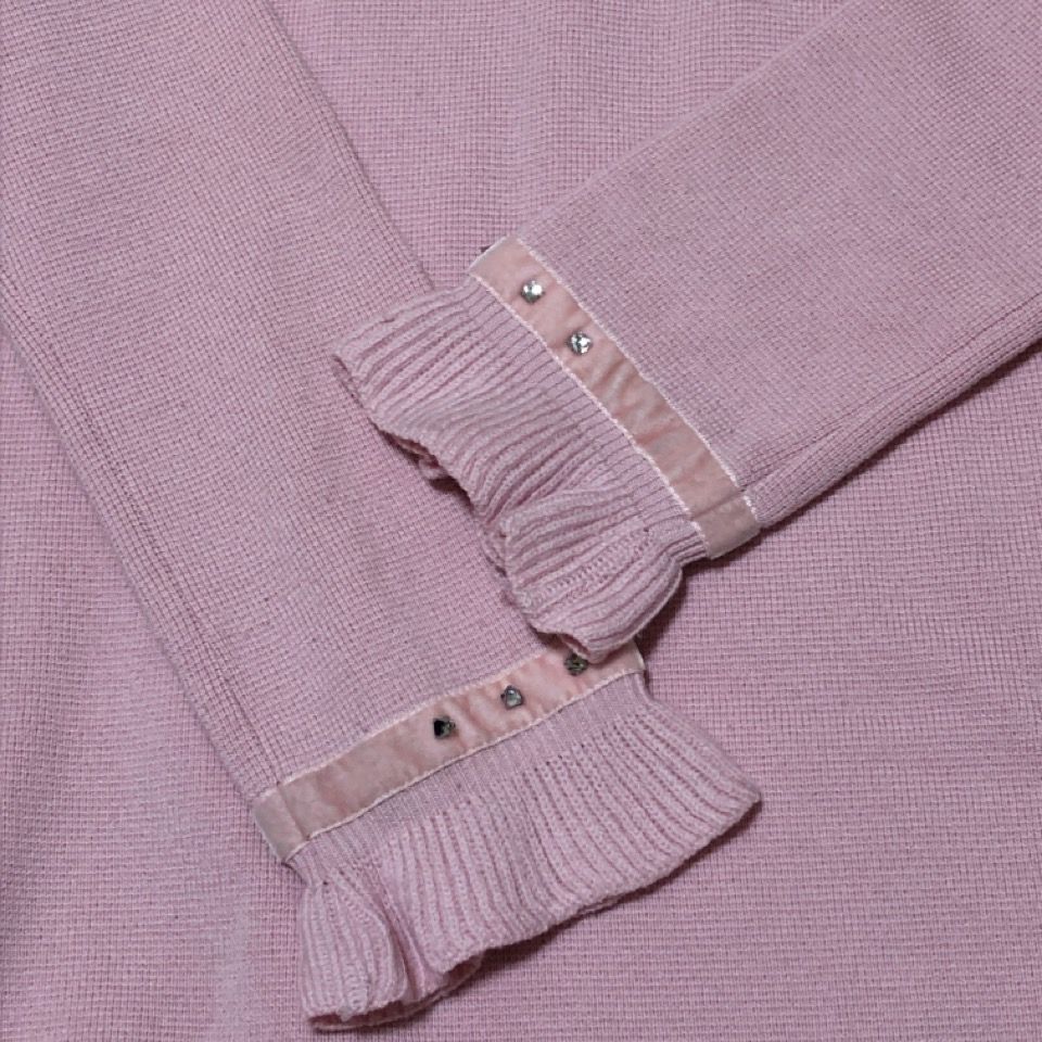 BLUMARINE ブルマリン ブルーガール イタリア製 ピンク ニット ワンピース 膝丈 スタッズ ラインストーン サイズXS ウール