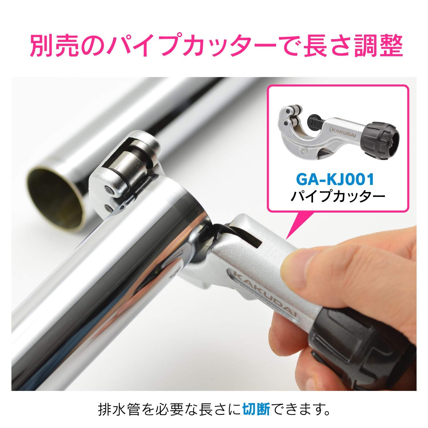 ・別売のパイプカッター(GA-KJ001)で必要な長さに排水管をカットすることができる