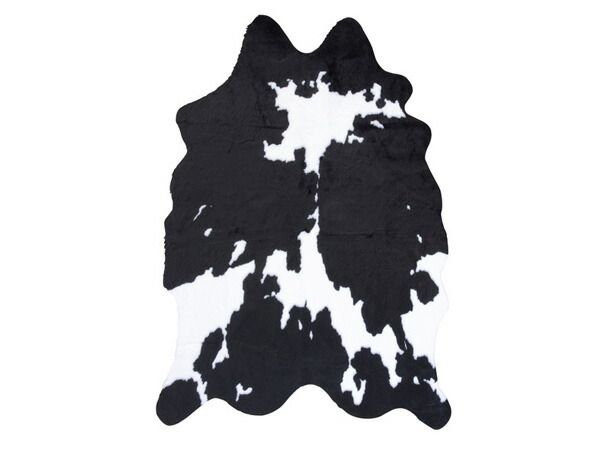 フェイクファーを使用した、カウ柄のラグマット。