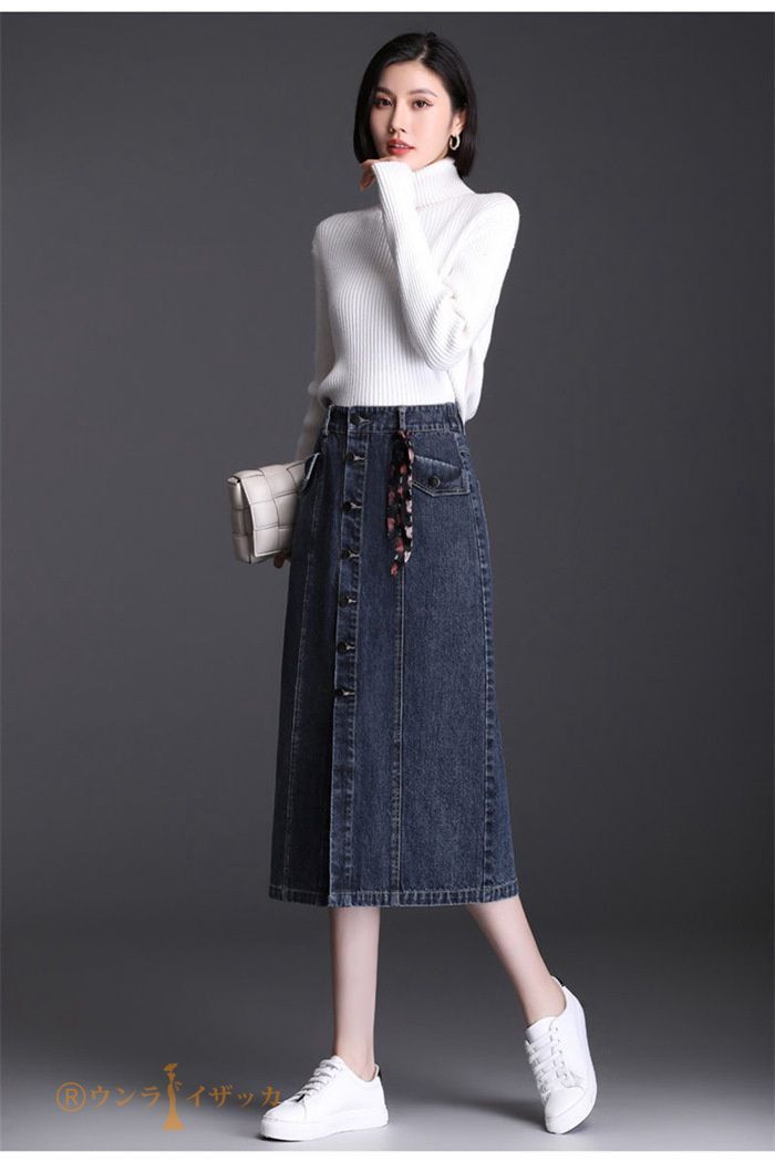 デニムスカート タイトスカート ロングスカート デニム レディース スカート マキシ丈 ロング タイト コットンデニム ストレッチ ハイウエスト ウエストゴム 体型カバー 着痩せ 無地 スリット入り お洒落 ミモレ丈 通勤 通学 大人 コーデ 大きいサイズ