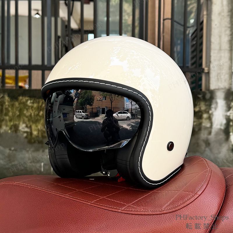 ジェットヘルメット ヴィンテージルック バイクヘルメットレトロ DOT認証 フェイスヘルメット 耐久性 安全性 通気性 男女兼用 ホワイト A 150