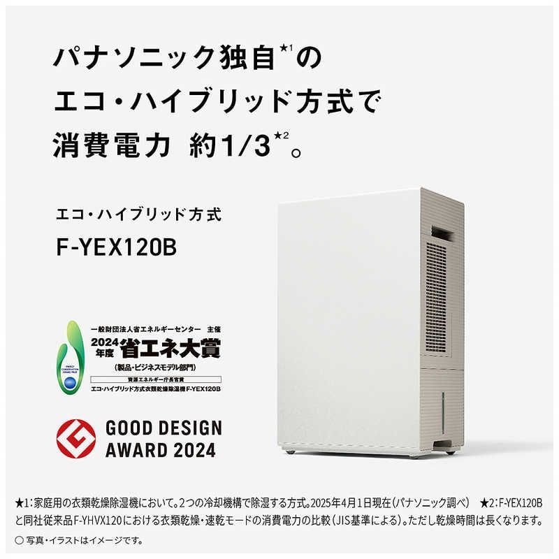 パナソニック Panasonic 衣類乾燥除湿機 ハイブリッド方式 ナノイーX 木造13畳まで 鉄筋25畳まで クリスタルホワイト F-YEX 120 B-W