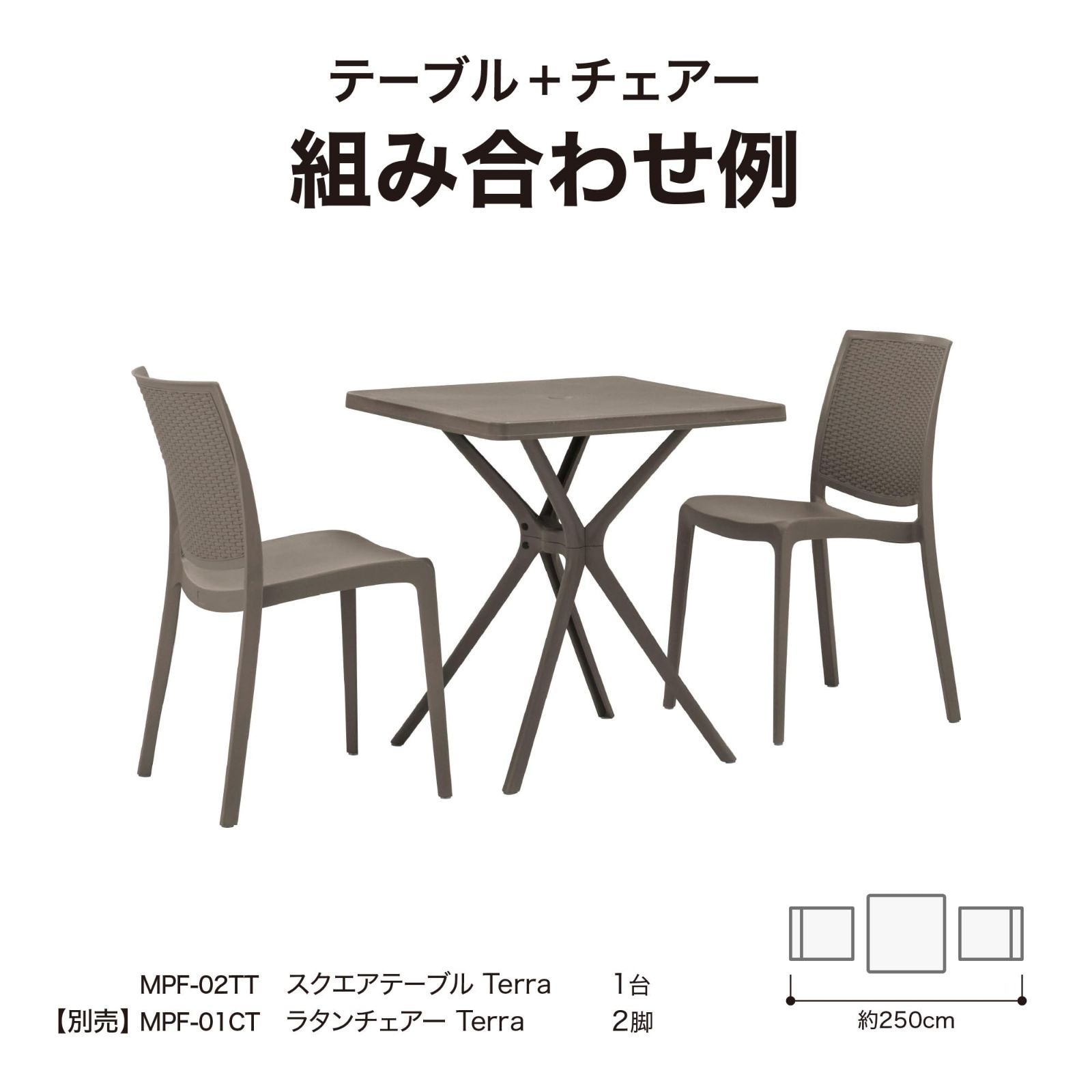タカショー スクエアテーブル Terra ポリプロピレン スクエアテーブル コントラクト品質 ガーデンテーブル ガーデンチェアー 商業・公共施設 MPF-02TT