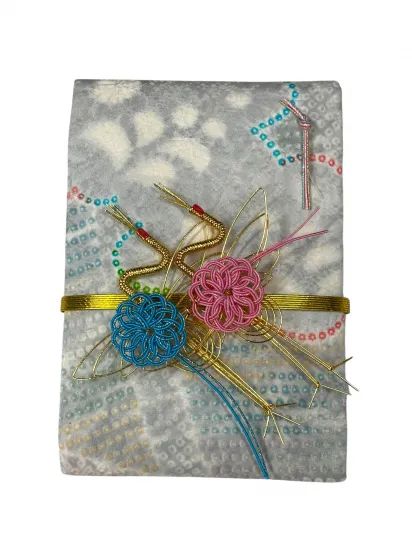 着物/帯から作られたご祝儀袋です水引もイメージに合わせて仕上げました