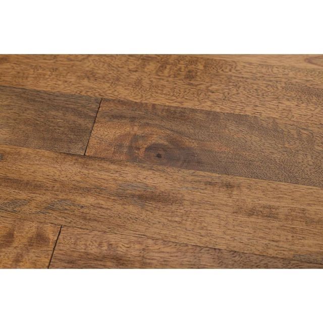 天然木のマンゴーウッドを贅沢に使用した重厚感あるテーブルと本革を再現したおしゃれなチェアを合わせたダイニングセット。