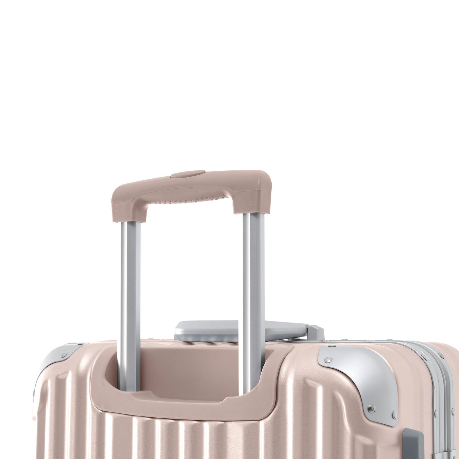 POINT 7.【アルミ製で、多段階調整可能ハンドル】 両方とも縦の凹溝設計を採用しており、箱体に上下の力学に支えられ、衝撃的なストレスを大幅に減らし、ハンドルの断絶を防ぐ。