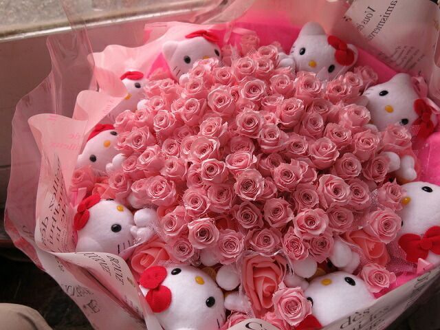 プロポーズ キティ 花束 ピンク 108本 フラワーギフト キティいっぱい 入り ブーケ プレゼント