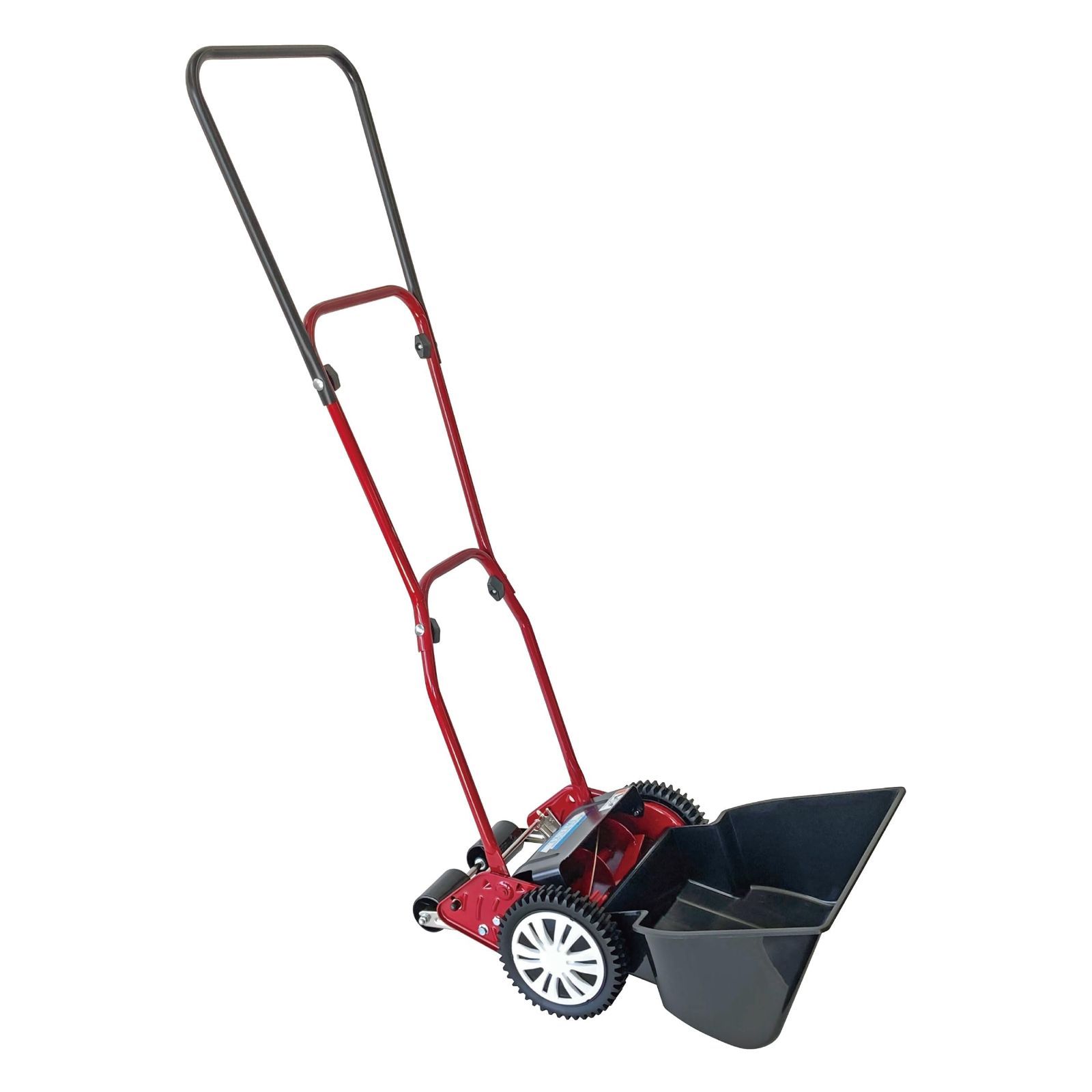 手動式なので簡単で軽量、コンパクトなので保管場所に困らない、当社従来機種に比べ芝刈り音が約6%、後ろに下がる音が約16%静かに!