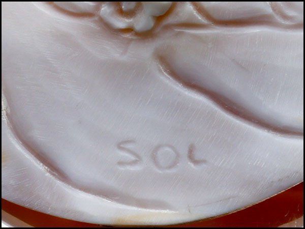 溌剌とした表情の女性像は、柔らかい髪の曲線や、艶やかな肌の質感など、精緻を極めた繊細な彫刻で演出された魅力的なシェルカメオルース作品です!