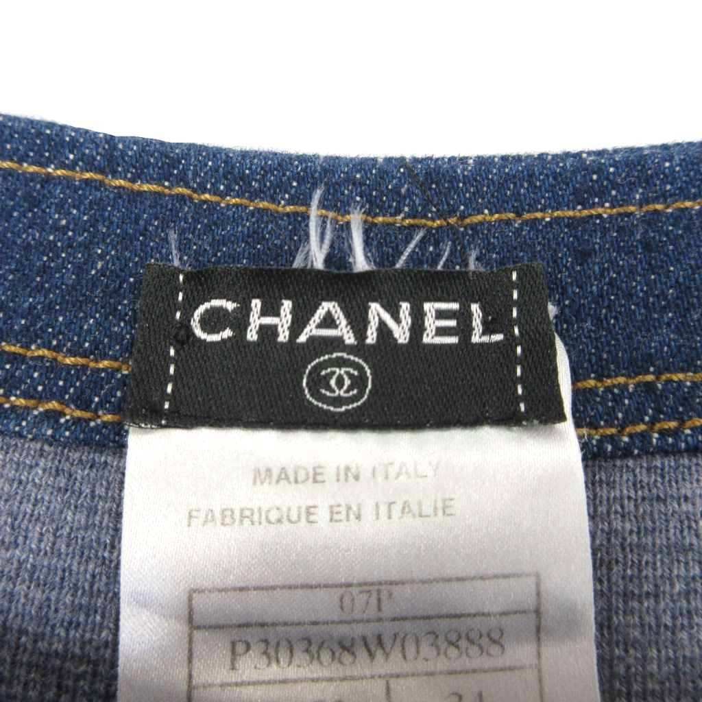シャネル CHANEL 07 P デニムトリムワンピース ニット地 カシシル カシミヤ シルク ココマークボタン インサイドアウト インディゴブルー 34 約S相当 STK