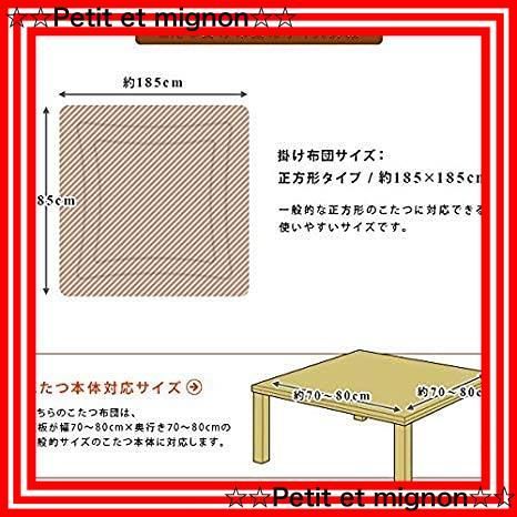 【商品サイズ】(約)185cm X 185cm(キルティング加工許容範囲 +5%-3%) こたつ本体対応サイズ:正方形/約70~80×70~80cm角のこたつ