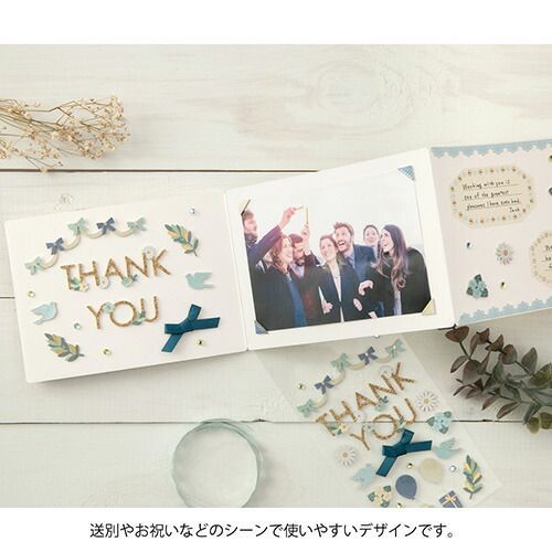 詳細情報感謝のシーンを彩るタイトルシール。1シート買うだけでアルバムや色紙のデコレーションが完成する手軽なシールです。