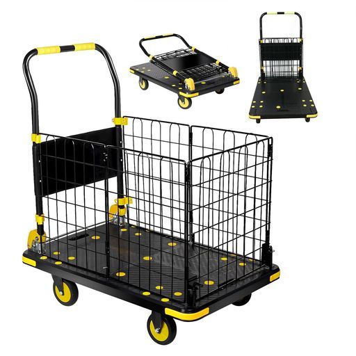 🛒革新的平板台車への変換可能性:活動的なメッシュカバーを備え、カバーを下ろすことで簡単に平板台車に変換。112cmx75cmの広々としたスチールメッシュベッドは、四方のサイドカバーが取り外し可能で、多様な用途に対応します。な折りたたみ式スチールメッシュ:大きな荷物を運ぶ際には折りたたんで、小さな荷物を運ぶ際には展開して使用できるスチールメッシュが、荷物の落下を防ぎます。