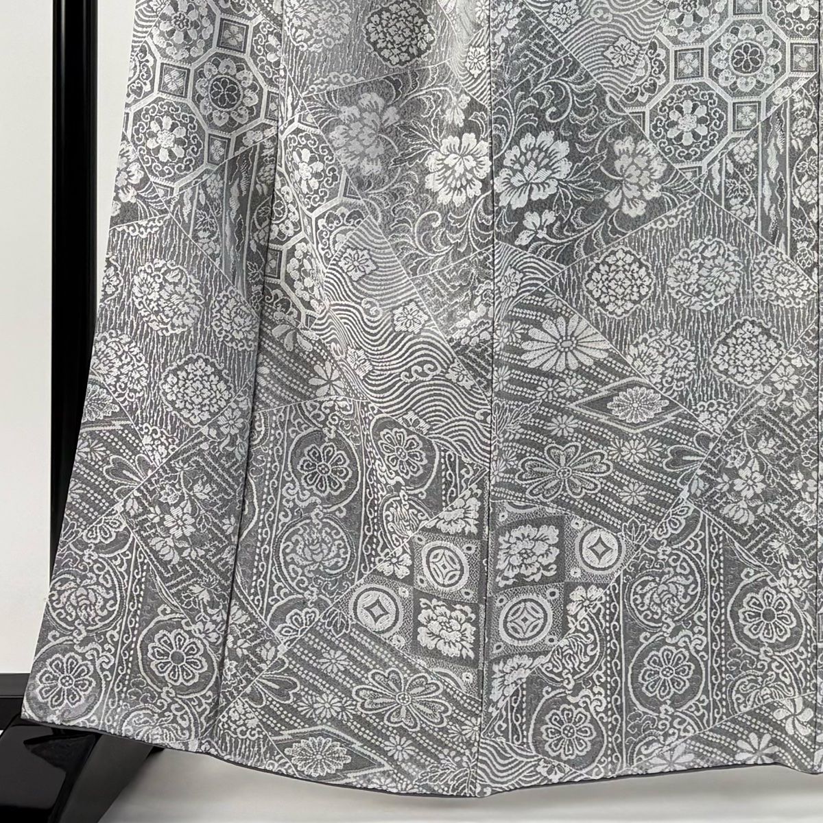 小紋 身丈160 cm 裄丈69 L 袷 紋意匠 蜀江文 波 灰色 正絹