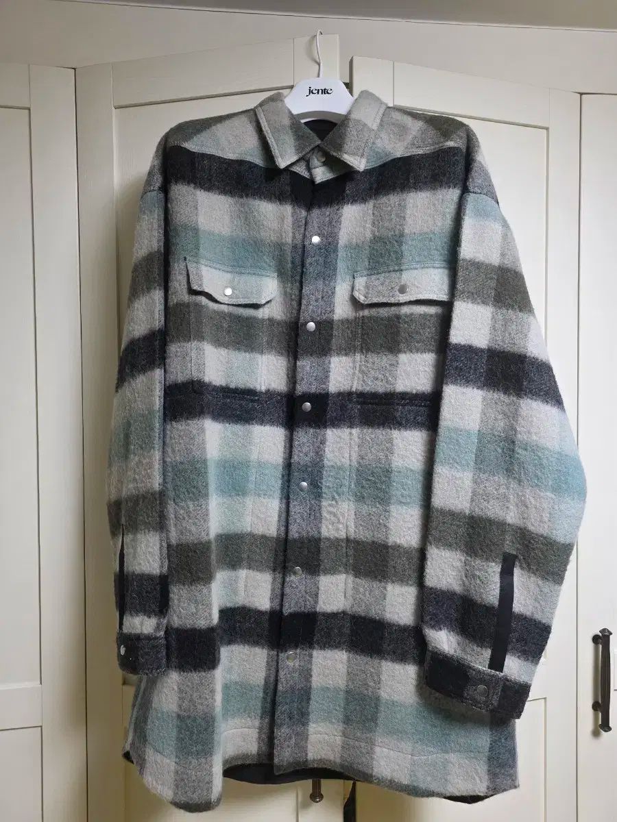リックオウエンス ロング LINE チェック ウール ブレンド オーバーサイズシャツ