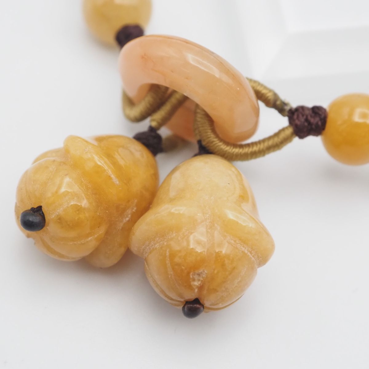 H 524 黄翡翠 ヒスイ ブレスレット 花彫刻 紐 デザイン アンティーク