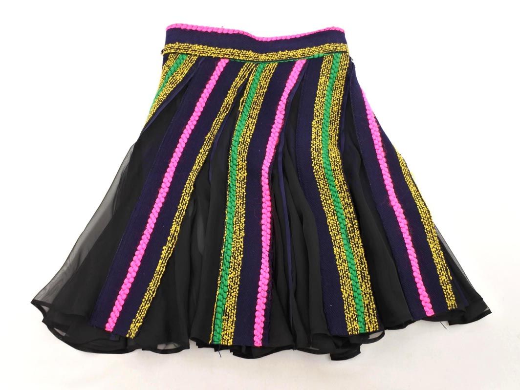 sacai サカイ ウール混 切替 シフォン 巻き ラップ スカート size 2|紺x黒 ◎レディース
