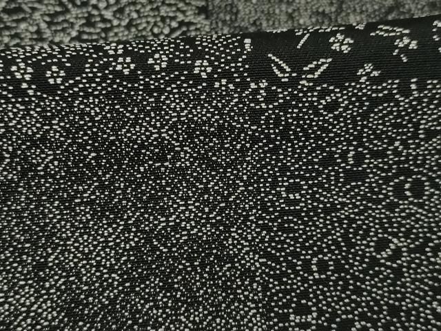 平和屋着物 お召 横段文 黒地 正絹 ck