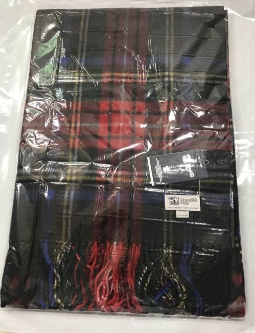 ギフト Johnstons of Elgin ジョンストンズ カシミヤ マフラー ストール チェック柄 大判 BLACK STEWART