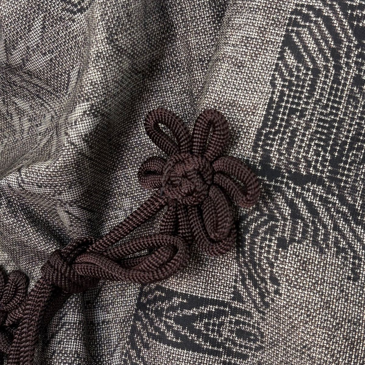 道中着 身丈134 cm 裄丈68.5 L 紬地 和装コート 葉柄 七宝 焦茶色 正絹 名品