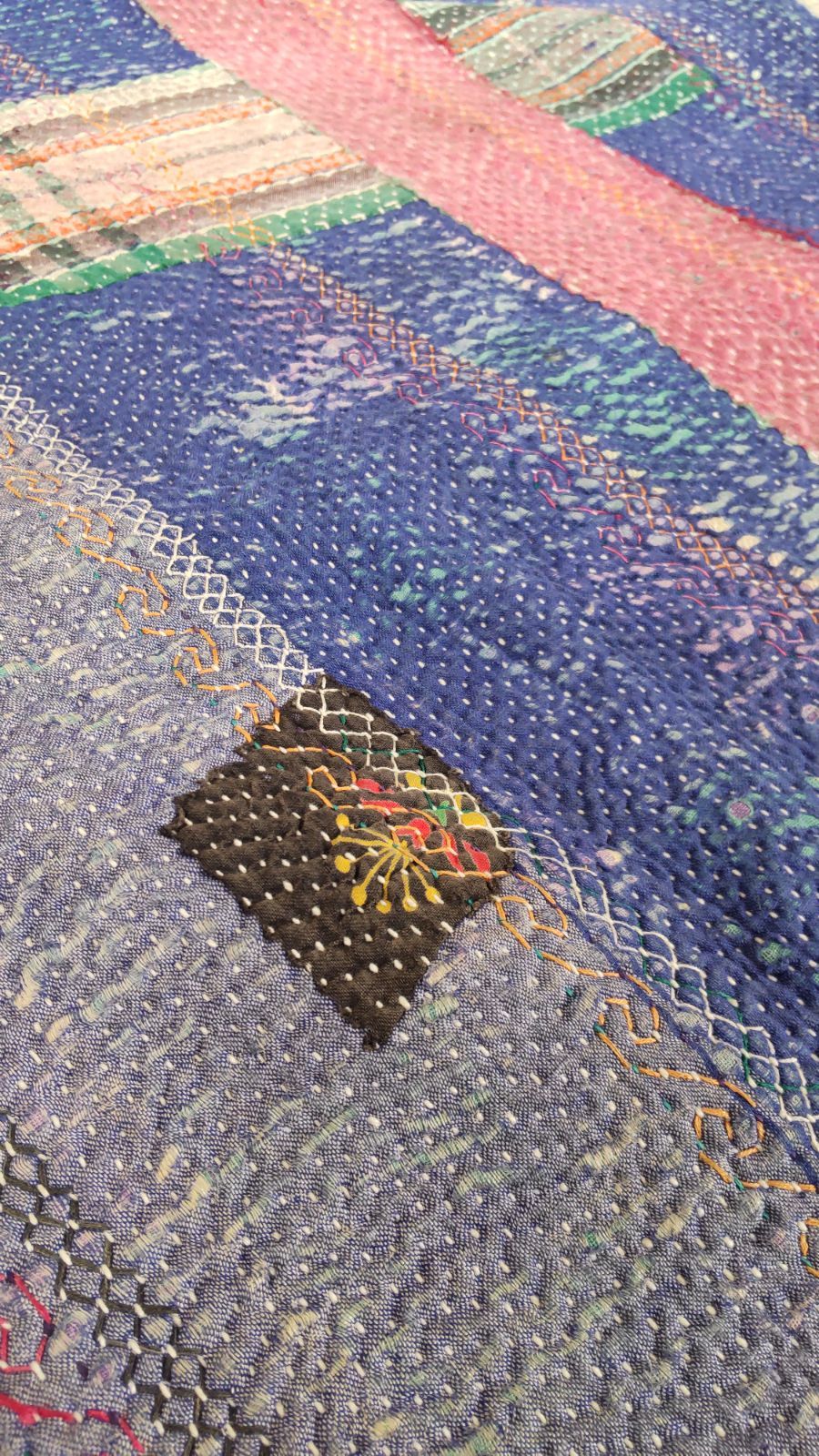 G 200 グドゥリー マルチカバー マルチマット ラグ ヴィンテージ カンタ刺繍 ボロ インド ビンテージ BORO アンティーク シャビーシック ラリーキルト 手縫い 刺し子 ハンドメイド 刺子 絨毯 はぎれ 古布 ブルー グリーン