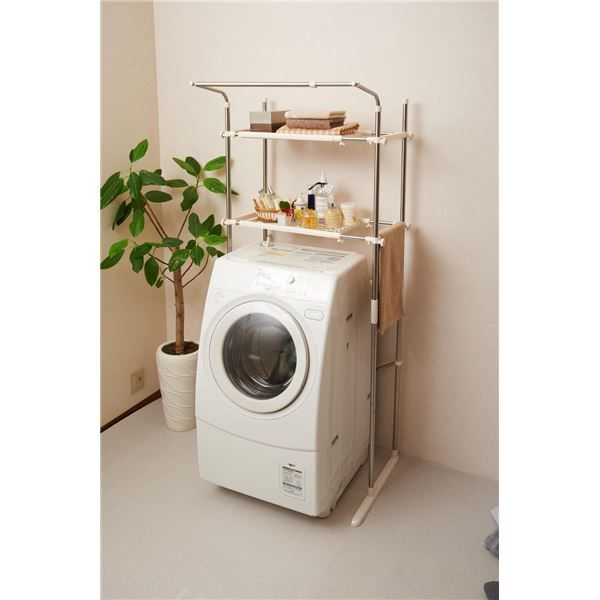 洗濯機上のデッドスペースを活用できる、2段式のランドリー収納ラック。