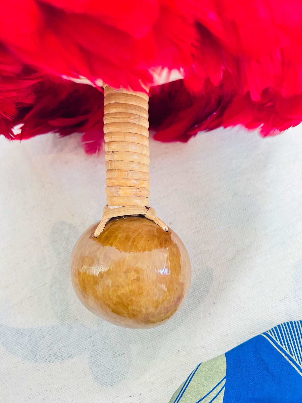 ウリウリ 一体型 フラダンス 楽器 ハワイ ハワイアン 赤 黄色 羽 マラカス Hawaii