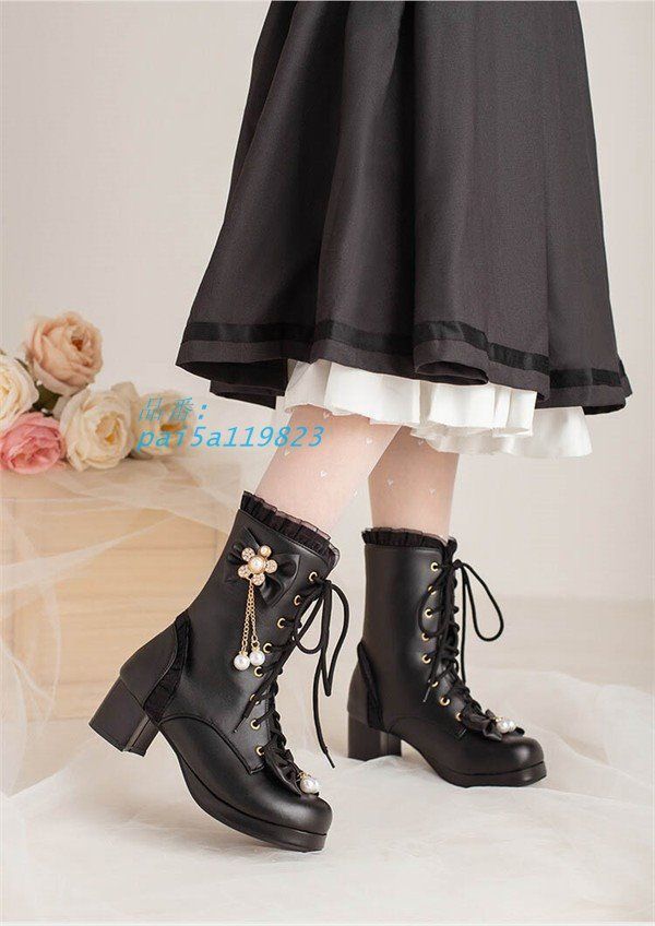 ブーツ 厚底 甘ロリ ロリィタブーツ ゴスロリ 低いヒール 編み上げ おでこ靴 女の子 メイド靴 ロリィタ靴 レディース pai 5 a 119823