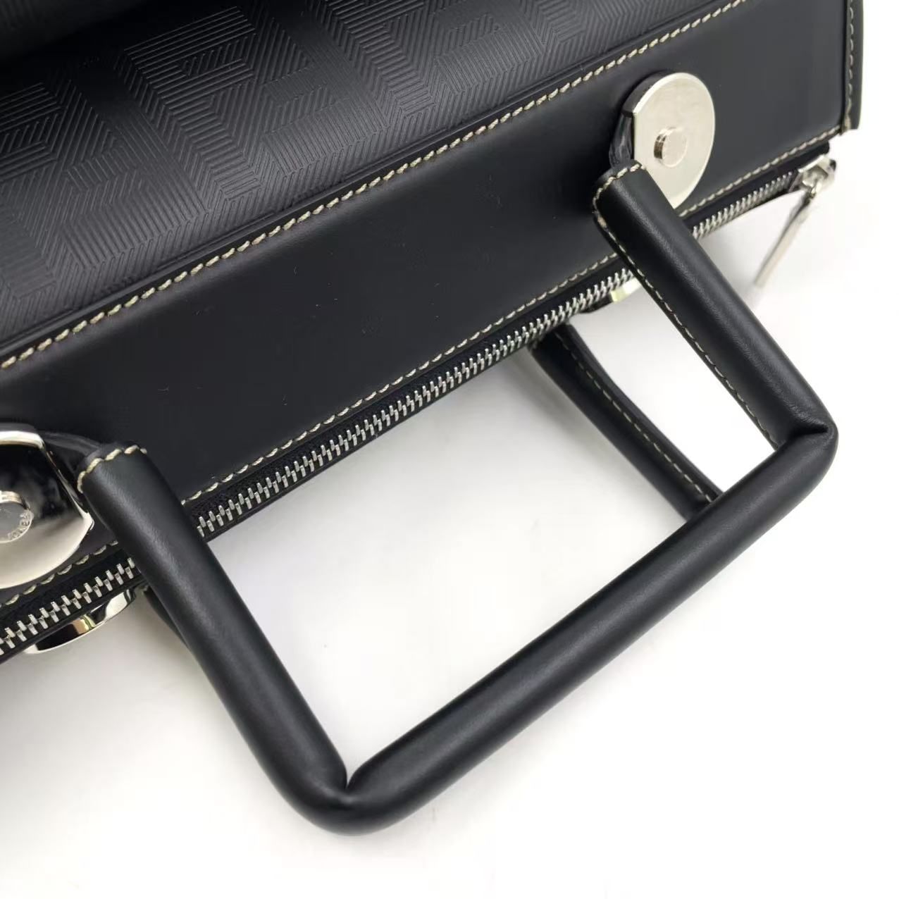 【商品名】FENDI 2WAY レザー×カーフ ブラック ボストンバッグ シルバー