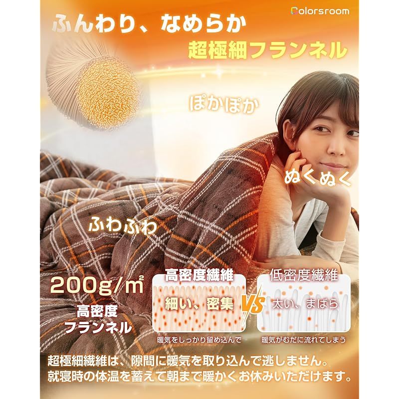 Colorsroom 掛け布団 セミダブル 羽毛より暖かい シンサレート 吸湿発熱綿入り 4層構造 超極細フランネル 冬用 あったか 2.4kg 毛布の代わり 軽量 洗える 抗菌防臭防ダニ ふわふわ 掛け心地よい 掛けふとん 約170×210cm チェック柄・ブラウン
