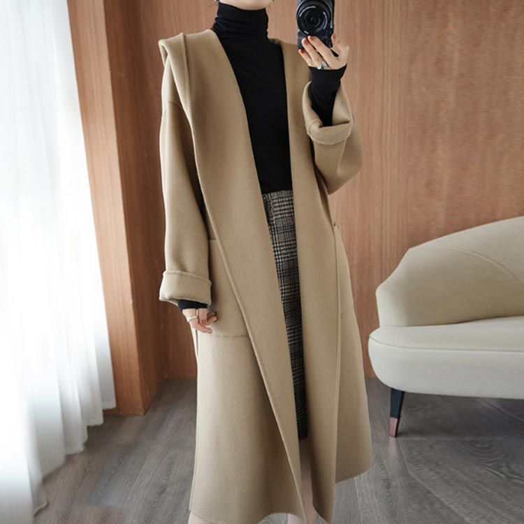 コート ウールコート 上品 ベルテッドコート フード付き ポケット付き ウール 長袖 ベルト付き 通勤 ロングコート エレガント