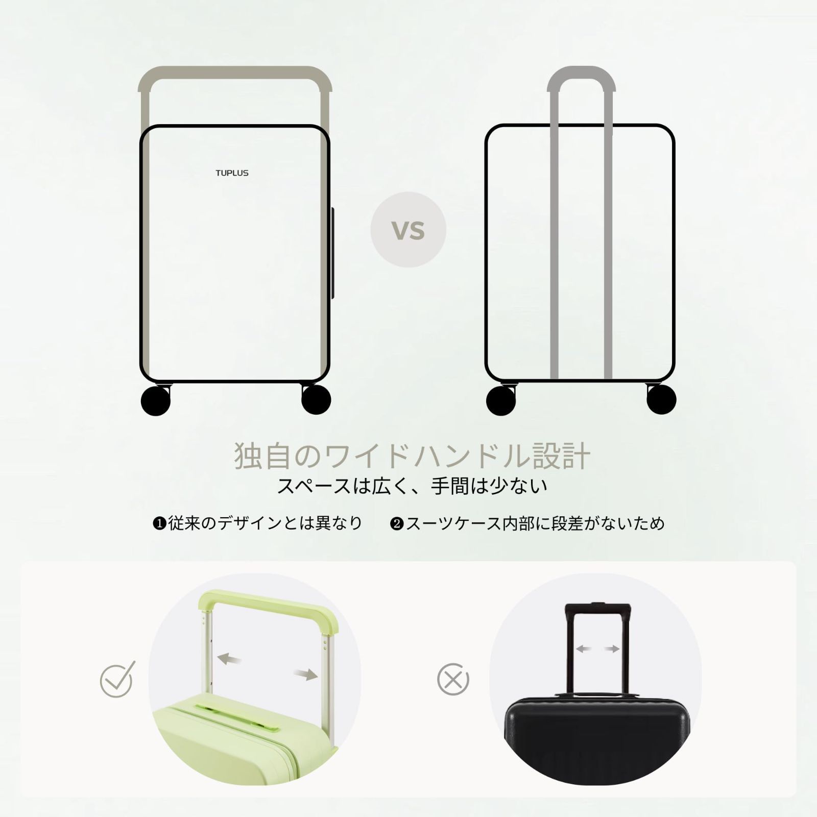 スーツケースの象徴である幅広のハンドルは