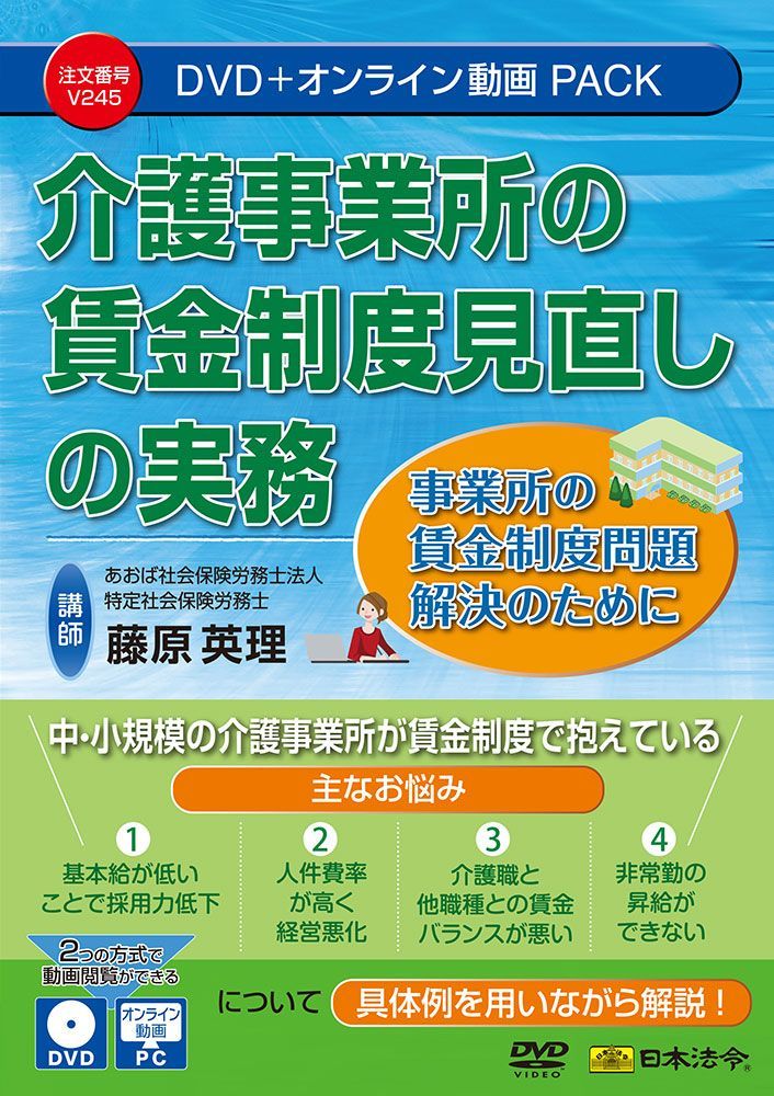 本DVDでは、介護事業所の賃金への問題解決のため、賃金制度の見直し方について、事例を用いて解説します。