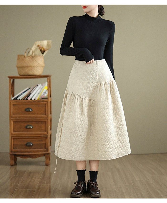 スカート レディース フ 秋冬 あたたかい 中綿 キレイめ ロングスカート Aライン キルティング きれいめ 防寒 暖かい ウエストゴム 通勤 milyx 1207