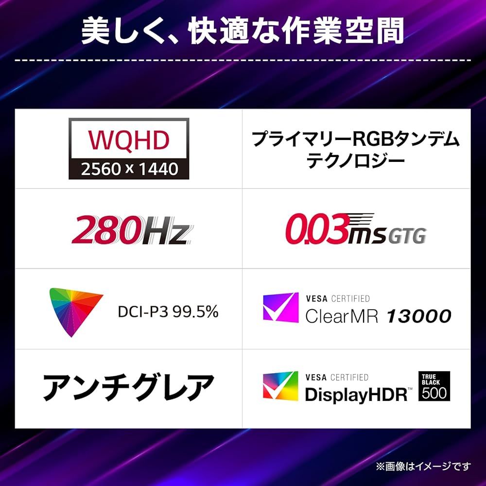 VGP 2026 技術賞|金賞 ゲーミングモニター LG UltraGear OLED -B 26.5インチ|WQHD|280 Hz|第4世代プライマリーRGBタンデム有機ELパネル