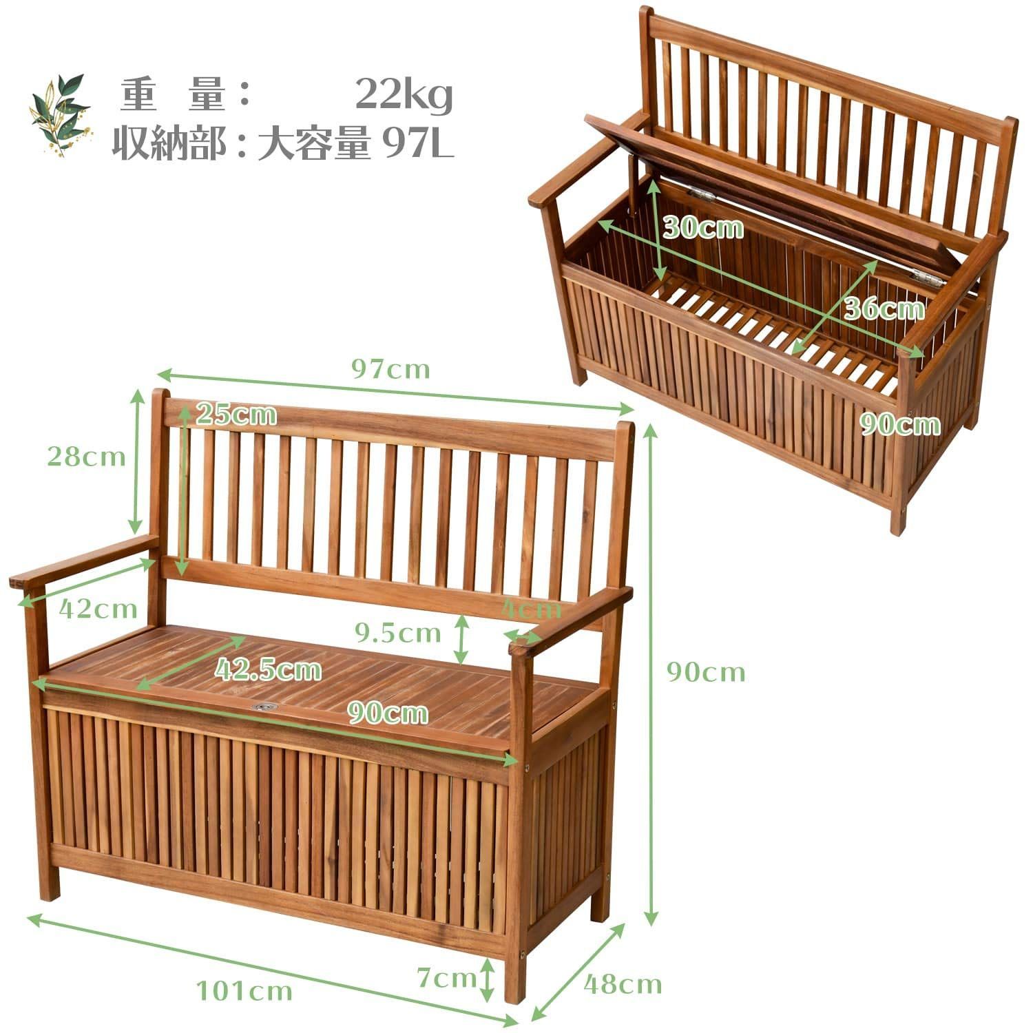 お庭 ベランダ 収納部取手付 アカシア天然木 テラス ベンチストッカー