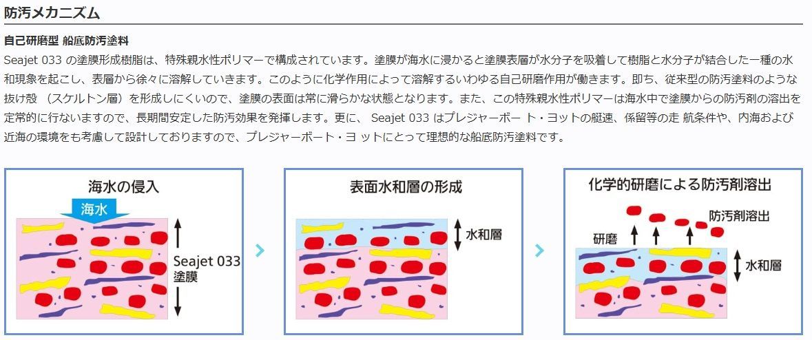 また、稼働率が少なく係留期間が長い場合は、静置防汚性の優れた Seajet 033 が最適です。