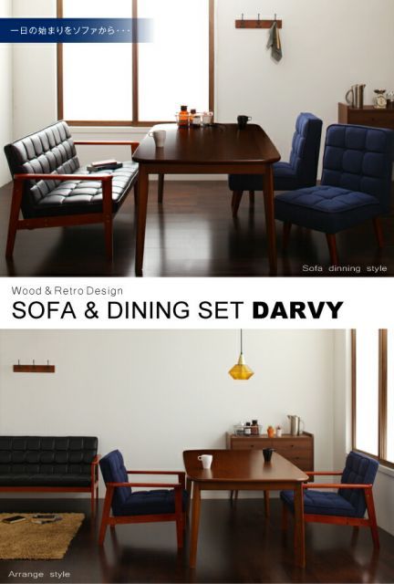 ソファ-ダイニングセット DARVY ダーヴィ 3点セット テーブル 2 Pソファ2脚 W 160