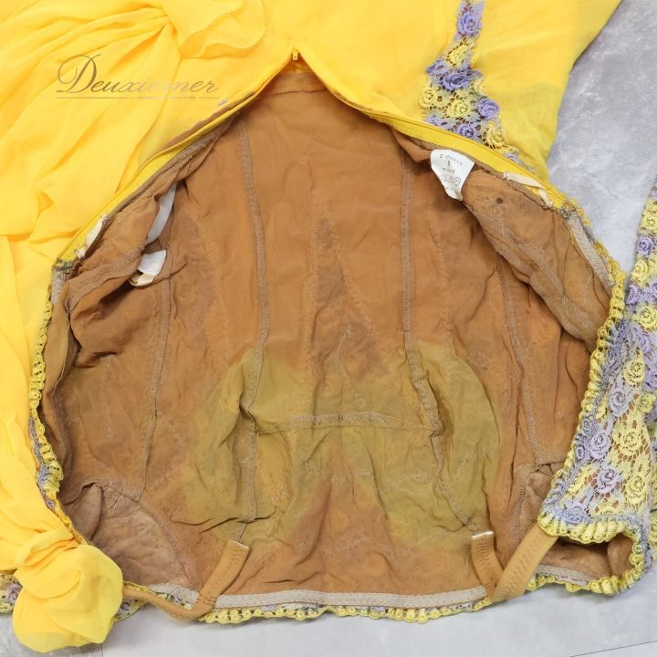 ▽綺麗な黄色&花モチーフの胸元がかわいいデザイン