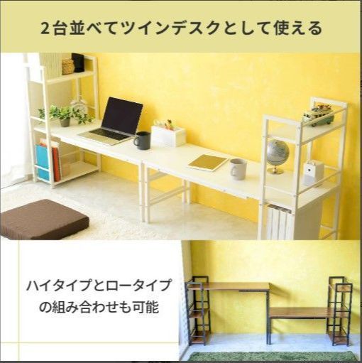 「ラック付きデスク」に高さ調整機能をプラスしました!ロータイプとハイタイプの2通りで使える、多機能で便利なコンパクトデスクです。