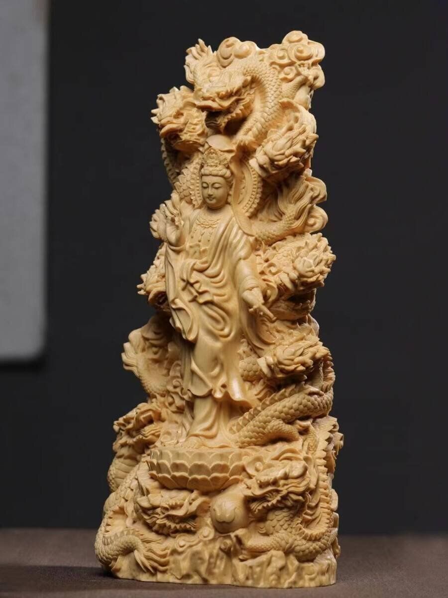 木彫仏像 仏教美術 精密細工 九龍観音像 木彫り 桧木製 観音菩薩像 仏像 置物 高さ18 cm 20