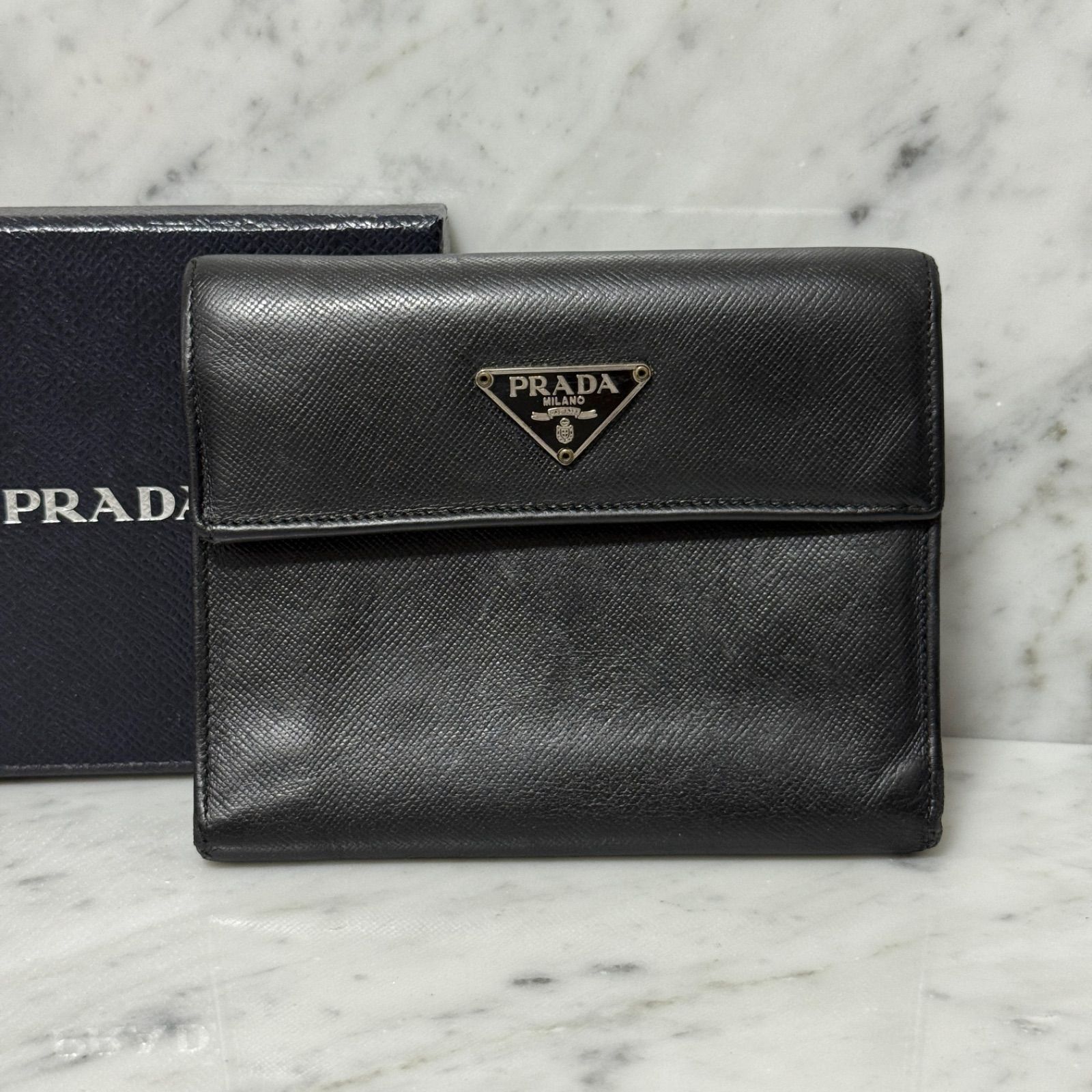 PRADA プラダ 三つ折財布 ブラック 黒 サフィアーノ 本革 レザー トライアングル