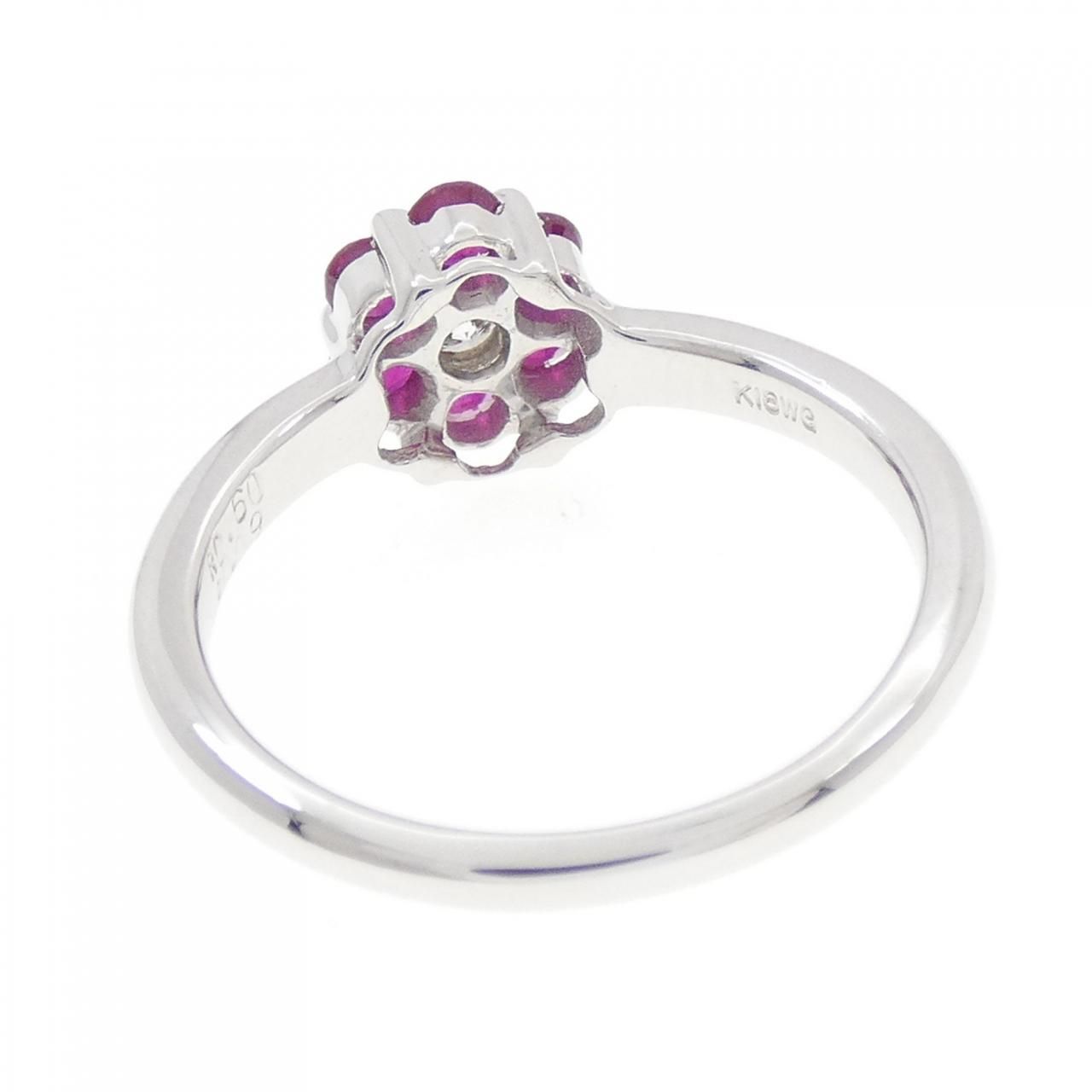 K18WG フラワー ルビー リング 0.60CT