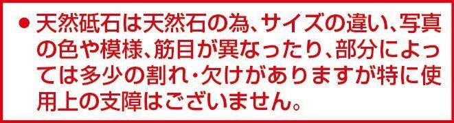 天然石の為、写真の色や模様、筋目が異なったり、部分によっては多少の割れ・欠けがありますが、特に使用上の支障はございません。