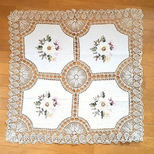 エストニア輸入 テーブルクロス 約 花柄 リボン 刺繍 コットン