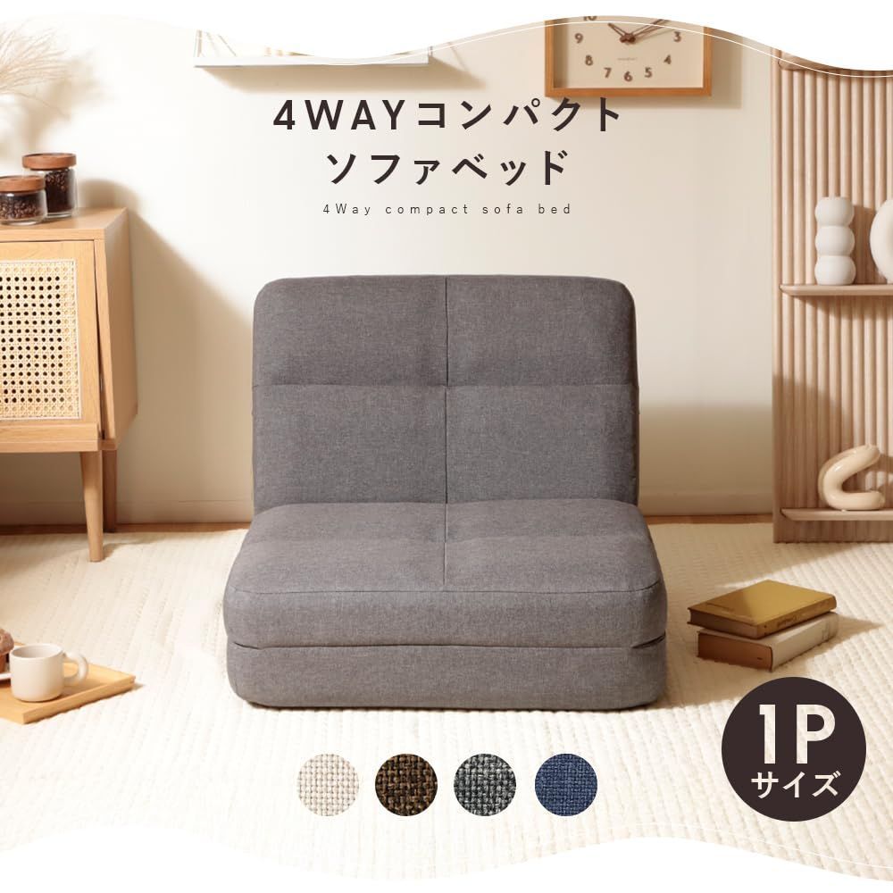 コンパクトな1人掛けサイズの4WAYソファベッド。ソファ、カウチ、ベッドに加え、背もたれが枕になるスタイルの全4種類に変形可能。背もたれは14段階のリクライニング機能付き。座面には弾力のあるウレタンを使用し、底付き感のない快適な座り心地で、身体をやさしく包み込みます。
