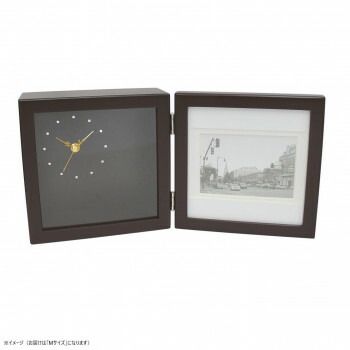 時計付きフォトフレームです。写真L判(8.9×12.7cm)やポストカード(10×14.8cm)を入れることができます。口の字型内枠を使用しています。