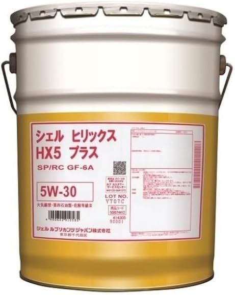 シェル ヒリックス HX5 プラス 5W-30は、シェルグループ独自の化学合成テクノロジーから生まれた超高粘度指数のベースオイルを用いたガソリンエンジン油です。エンジン保護性能を強化するとともに、エンジンのクリーンな状態を維持し、車両本来の制をを引き出すことが出来ます。ターボ搭載車から大排気量まで幅広い車種に適応した、高性能エンジンオイルです。品質レベルSP/RC GF-6A シェル ヒリックス HX5 プラス 5W-30 の特徴1.ターボ搭載車にもお使いいただけます シェル ヒリックス HX5 プラス 5W-30は、高温・高負荷な運転環境であっても十分な油膜を保持する性能を有しています。高粘度指数のベースオイルと添加剤システムの適正な配合により、ターボ搭載車にお使いいただけるだけでなく、省燃費車まで幅広く対応出来ます。2.高いエンジン保護性能を有しています高い酸化安定性と耐摩耗性を有していることから、ストップ&ゴーが多く、走行距離が短い過酷な街乗り条件下であってもエンジン寿命の延長に寄与します。エンジン内部のスラッジやススから守り、クリーンに保つことでエンジン性能が低下するのを防ぐとともに、その性能の持続性にも優れています。また最新の直噴ターボチャージャー付ガソリンエンジンにも適しており、低回転域でのブレイグニッション(LSPI)を防止します。 SHELL