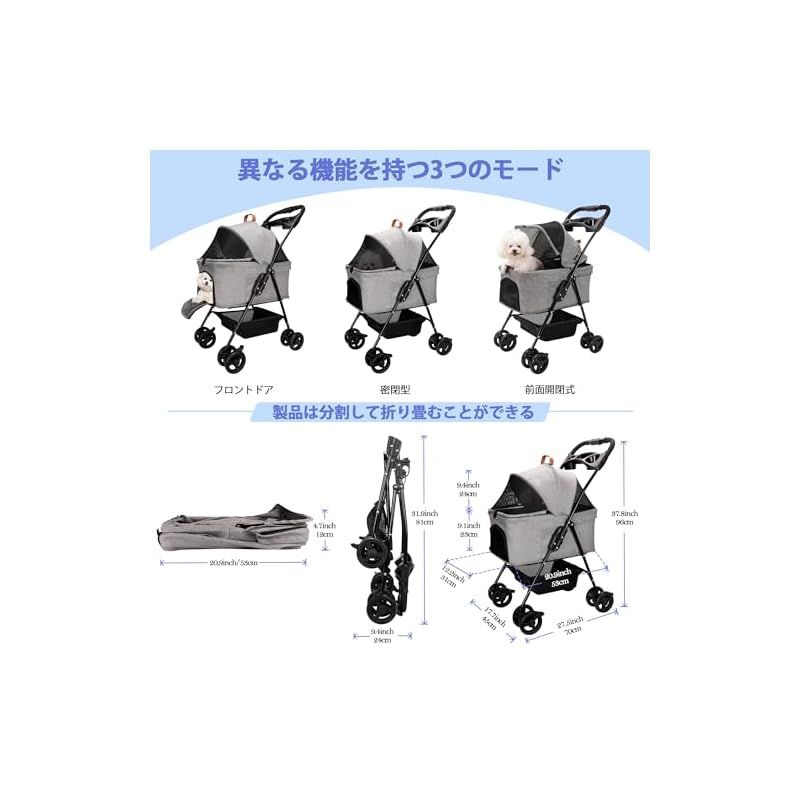 ? 快適で安全な旅行- ペットバスケットに内蔵された安全バックルは、子犬や子猫の脱走を防ぎながら、しっかりと固定することができます。衝撃吸収性を備えた4つのEVA車輪、あなたは固定方向または360°ステアリングで前進することができます、途中で休憩を取りたい場合、ちょうど犬のベビーカーを固定するための車輪にブレーキシステムを踏んで、あなたのペットに快適さと安全性と安定性を提供し、滑らないようにします。