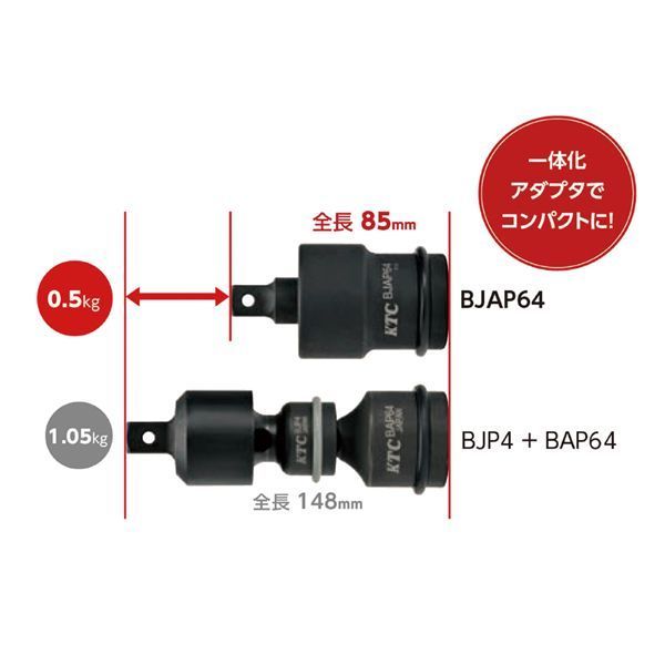 KTC 京都機械工具 19.0 SQ インパクトレンチユニバーサルジョイントアダプタ BJAP 64